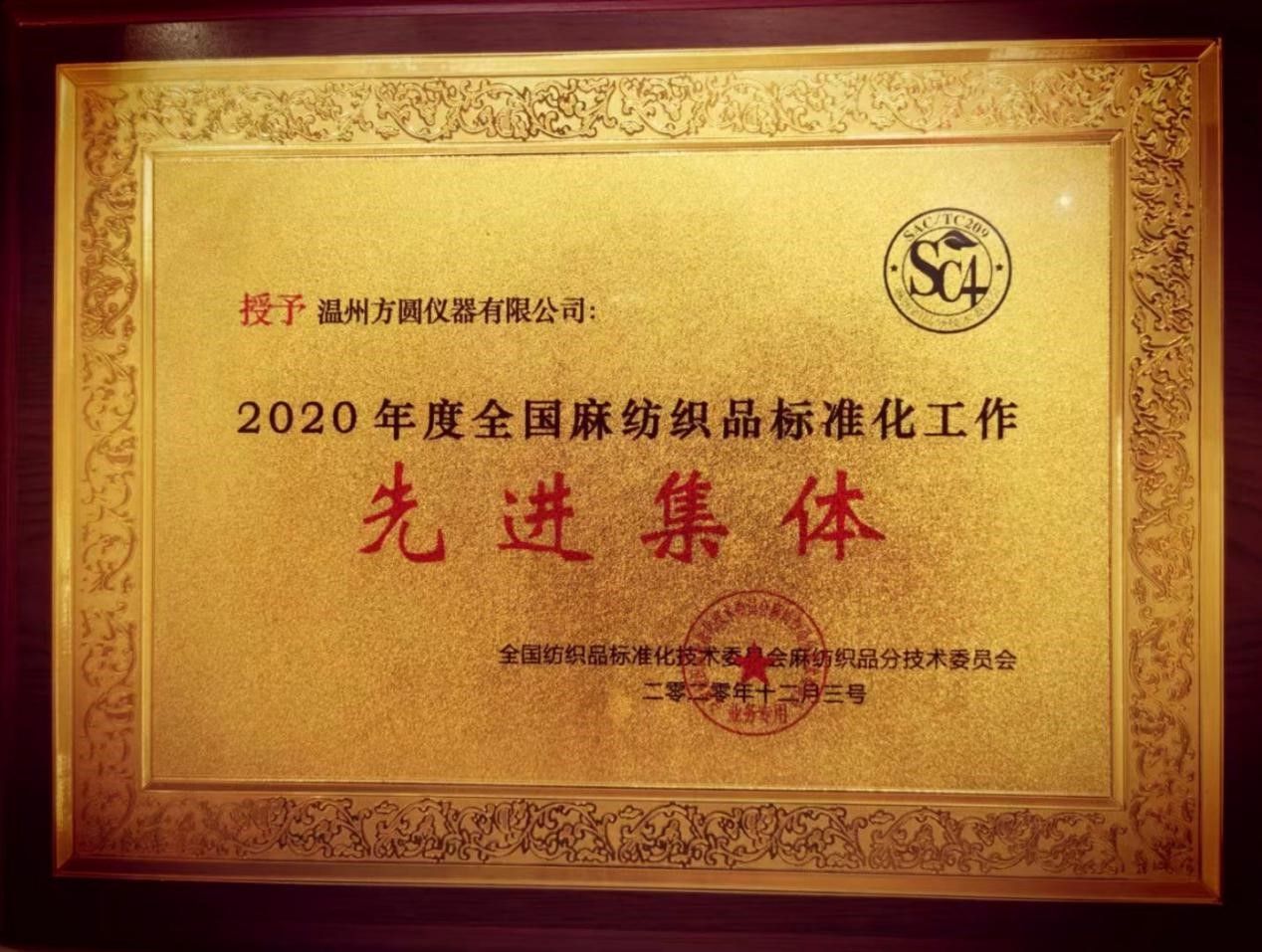 中國麻紡行業(yè)協(xié)會會長、全國麻紡織品標(biāo)準化技術(shù)委員會董春興主任作了麻紡行業(yè)的形勢分析,同時也對麻標(biāo)委接下來的工作安排提出了要求。本次大會還表彰了2020年度標(biāo)準化工作先進單位、先進個人和優(yōu)秀觀察員。溫州方圓儀器有限公司憑借多年以來在紡織行業(yè)的突出貢獻被評為2020年度全國麻紡織品標(biāo)準化工作先進集體。